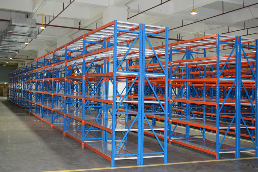 中型貨架是根據貨架的承載能力分類的,通常是500~800kg/層。一般是使用在人工作業的場合,所以在普通使用的情況下,過道兼顧人工搬運貨物時的距離即可,如果高度較高,需要登高車作業,這樣就需要考慮登高的通行寬度。