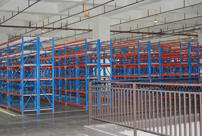 貨架的立柱為藍色,橫梁為桔紅色,層板為白色,這也是典型的色彩搭配,使倉庫的色彩錯落有致,擺放貨物時,也比較顯眼。
