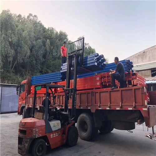 生產過程 比較繁瑣,小編就不一一細講,閣樓貨架有采用固定的顏色進行噴漆,一般是藍橘色。如下圖,亞大實業貨架廠已經把生產好的閣樓貨架進行運輸到貨車上。
